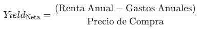 *Fórmula: (Renta Anual Bruta – Gastos Anuales) / Inversión Total*
